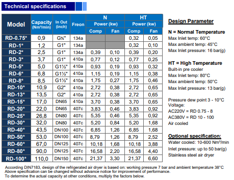 Refrigerant air dryer provide dry compressed air with pressure dew point 3-10 ˚C that is